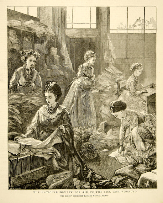 1870 Wood Engraving Henry Woods Art Red Cross Franco-Prussian War Medical YTG1