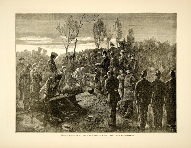 1870 Wood Engraving Officer Funeral Franco-Prussian War Military German YTG1