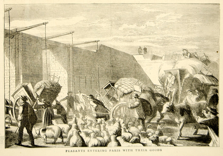 1870 Wood Engraving Peasants Traveling Paris Sheep Herd Franco-Prussian War YTG1
