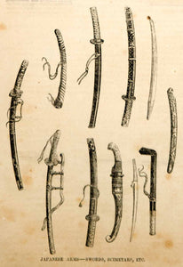 1854 Engraving Japanese Weapons Arms Swords Scimitars Japan Historic Antique
