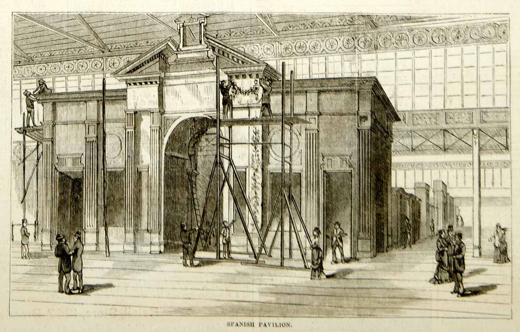 1876 Engraving Centennial Exposition Philadelphia World's Fair Spanish Building