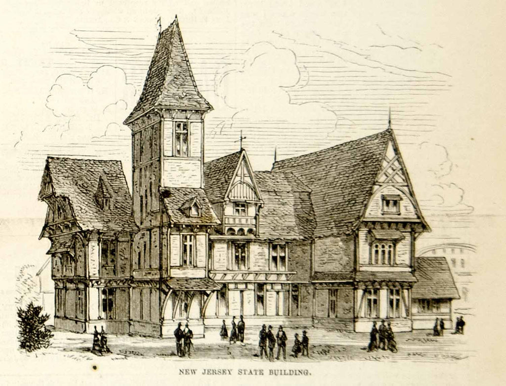 1876 Engraving Centennial Exposition Philadelphia Fair New Jersey State Building