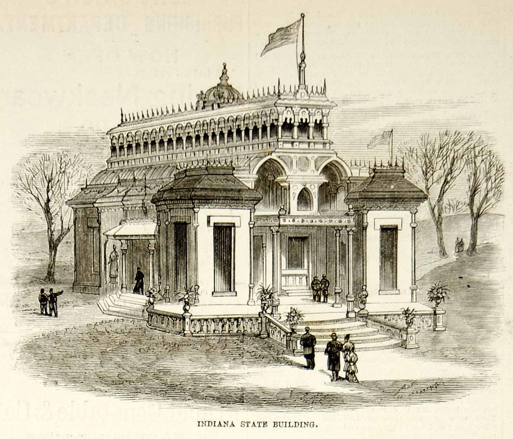 1876 Engraving Centennial Exposition Philadelphia Fair Indiana State Building