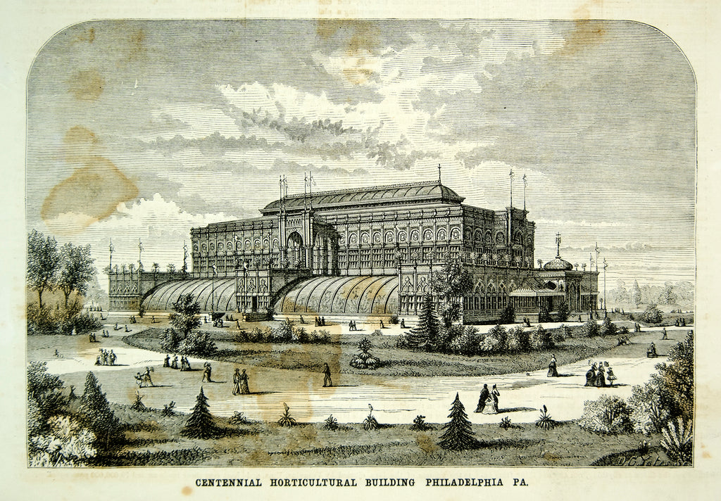 1875 Wood Engraving Centennial Horticultural Building Philadelphia 1876 YSA4