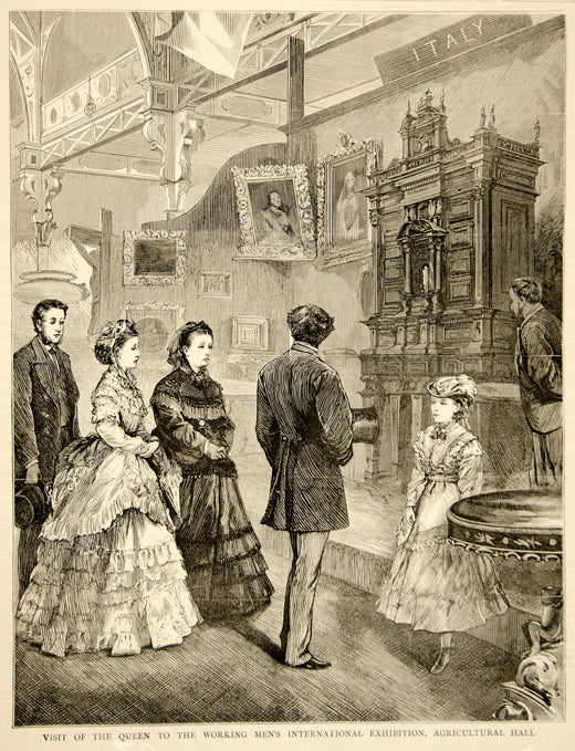 1870 Wood Engraving Queen Victoria Agricultural Hall Islington London YTG1