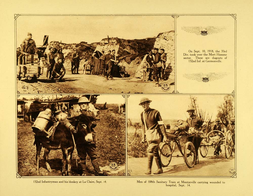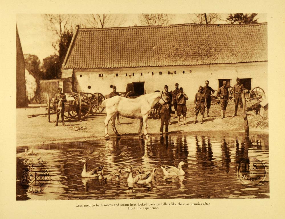 1920 Rotogravure WWI Front Line Soldiers Billet Farm Animals Agricultural WAR1
