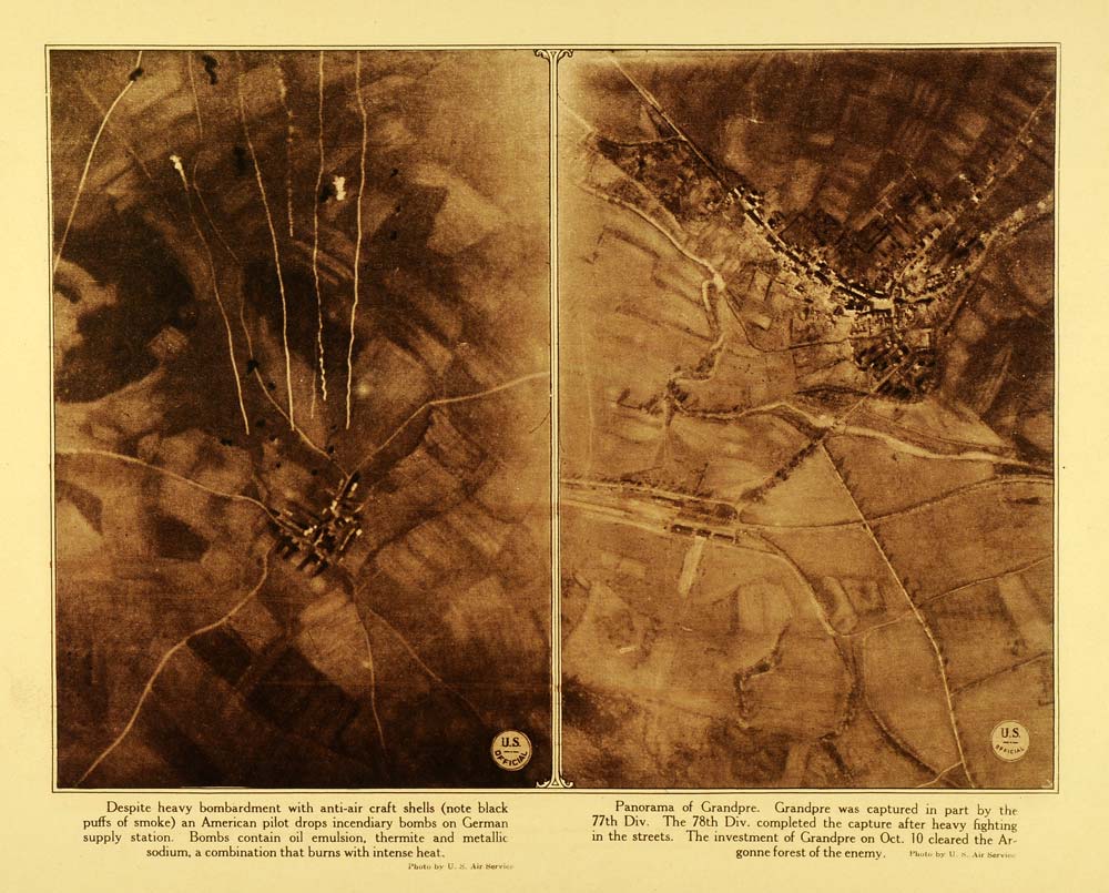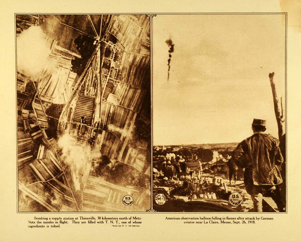 1920 Rotogravure WWI Aerial Grandpre Anti Aircraft Artillery Incendiary WAR1