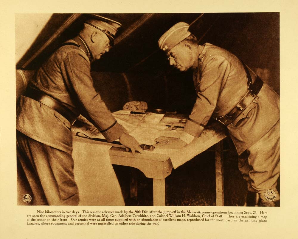 1920 Rotogravure WWI Military Map Meuse Argonne 80th Division Cronkhite WAR1