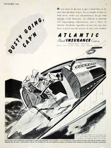 1940 Ad Atlantic Mutual Yacht Boat Insurance Jib Earl Oliver Hurst Cartoon Art