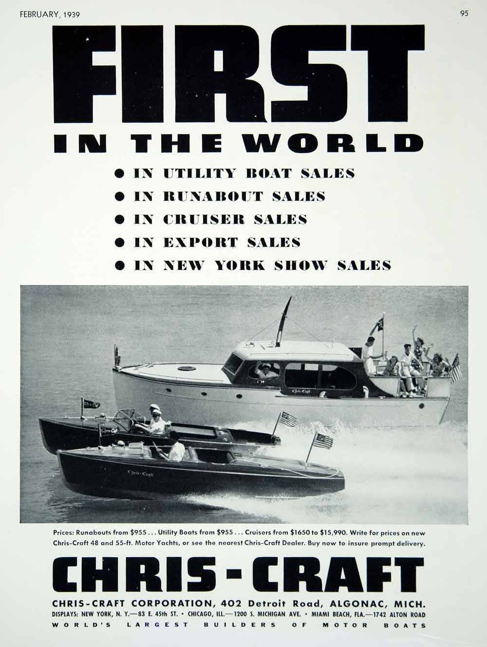 1939 Ad Chris Craft Utility Boats Runabouts Cruisers Motor Yachts Algonac Mich.