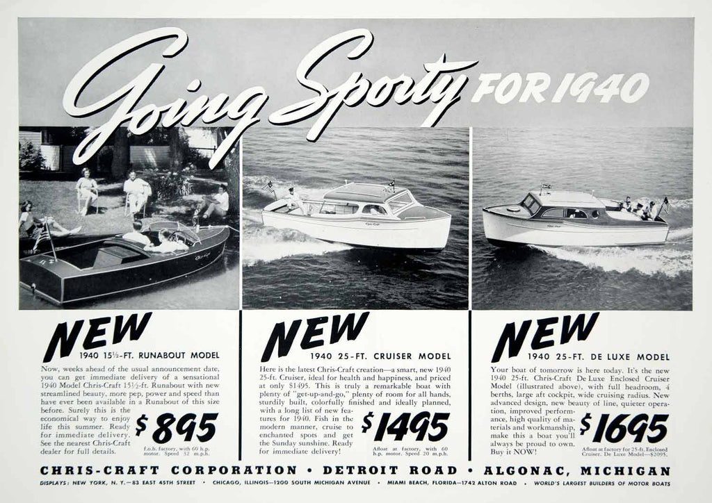 1939 Ad Vintage Chris Craft 1940 Models Motor Boat Runabout Cruiser Algonac Mich
