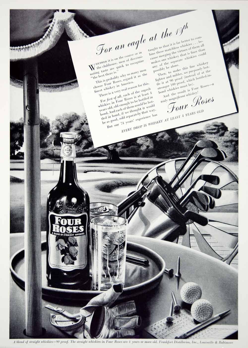 1939 Ad Vintage Four Roses Whiskey Golf Clubs Golfing 19th Hole Alcohol Whisky