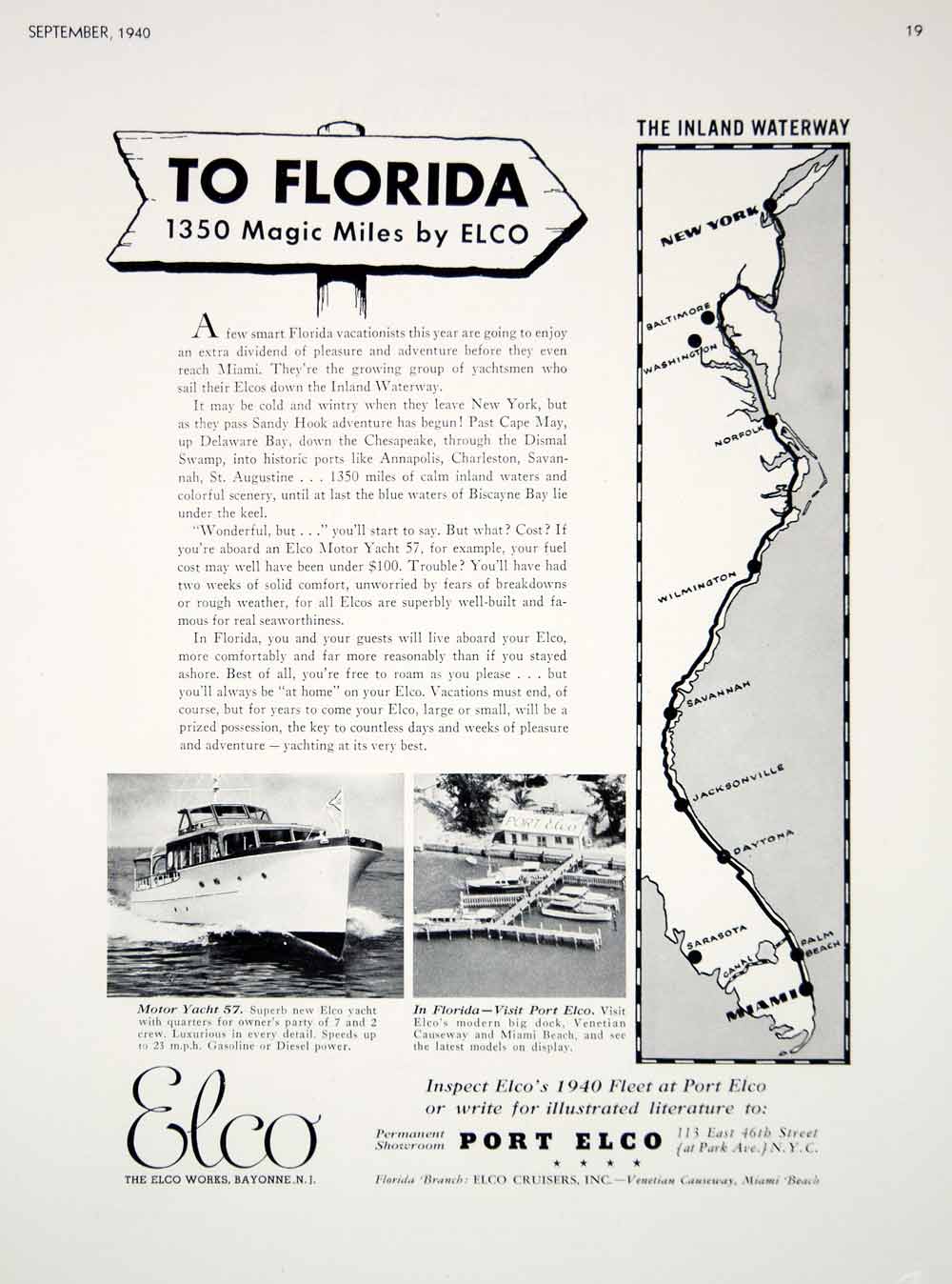 1940 Ad Vintage Port Elco Motor Yacht 57 Inland Waterway Bayonne Florida Boating