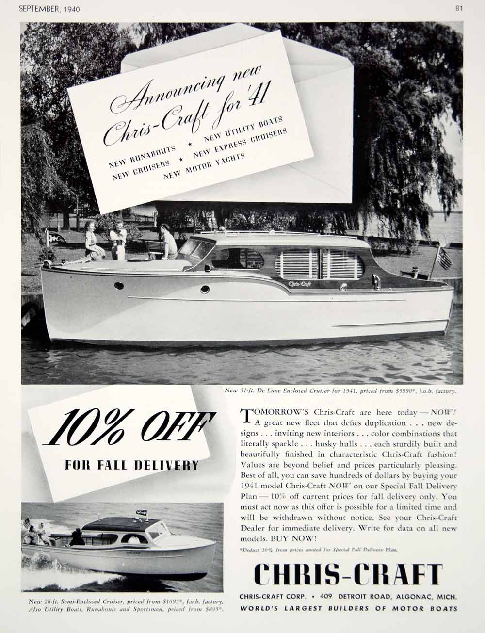 1940 Ad Vintage Chris Craft Motor Boat Yacht Enclosed Cruiser 1941 Model Algonac