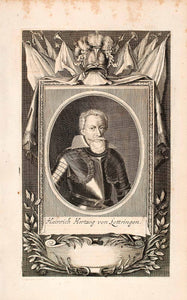 1721 Copper Engraving Henry II Duke Lorraine France Royal Military Armor EUM3