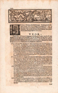 Period Paper is pleased to offer an extremely rare and impressive early eighteenth century collection of biographies and portrait engravings and etchings, produced in Leipzig, Germany in 1721 and 1722. Included are notable monarchs, rulers, religious figures, and members of notable Houses throughout Europe, including several genealogical charts of dynastic lines, spanning the sixteenth to early eighteenth centuries. The collection is comprised of exquisitely engraved and etched copper portrait plates framed by varying decorative motifs, all engraved by Johann Friedrich Rosbach. Many of the portraits include separate biographical pieces ranging in length from a single paragraph to several pages for more notable European monarchs and emperors. If present, the accompanying text is in German and is composed of beautiful woodcut text, with most pages containing elegantly etched drop cap initials, head-and tail-pieces and vignettes. The superb, folio-sized stock upon which the collection is engraved and etched employed the latest advances in eighteenth century paper making and highlights the era's predilection for strong, lightly sized paper with a fine structure and smooth surface. The paper's characteristics are thus similar to Japanese Gampi, and the result is well-preserved and crisp images that exceptionally capture Rosbach's fluid and sharp line work. This collection represents a unique opportunity to collect a valuable part of European history stunningly composed and illustrated.