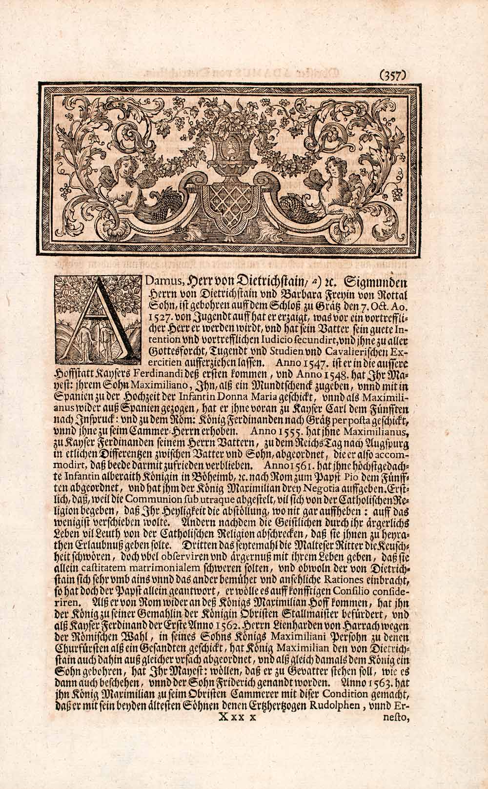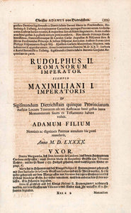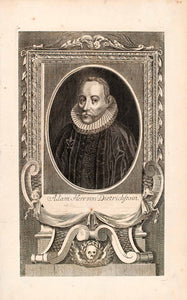 Period Paper is pleased to offer an extremely rare and impressive early eighteenth century collection of biographies and portrait engravings and etchings, produced in Leipzig, Germany in 1721 and 1722. Included are notable monarchs, rulers, religious figures, and members of notable Houses throughout Europe, including several genealogical charts of dynastic lines, spanning the sixteenth to early eighteenth centuries. The collection is comprised of exquisitely engraved and etched copper portrait plates framed by varying decorative motifs, all engraved by Johann Friedrich Rosbach. Many of the portraits include separate biographical pieces ranging in length from a single paragraph to several pages for more notable European monarchs and emperors. If present, the accompanying text is in German and is composed of beautiful woodcut text, with most pages containing elegantly etched drop cap initials, head-and tail-pieces and vignettes. The superb, folio-sized stock upon which the collection is engraved and etched employed the latest advances in eighteenth century paper making and highlights the era's predilection for strong, lightly sized paper with a fine structure and smooth surface. The paper's characteristics are thus similar to Japanese Gampi, and the result is well-preserved and crisp images that exceptionally capture Rosbach's fluid and sharp line work. This collection represents a unique opportunity to collect a valuable part of European history stunningly composed and illustrated.