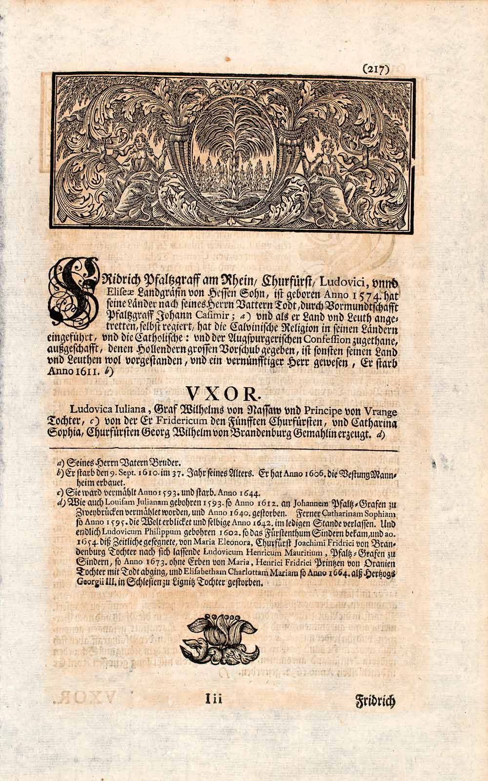 1721 Copper Engraving Portrait Frederick IV Elector Palatine Rhine Germany EUM2