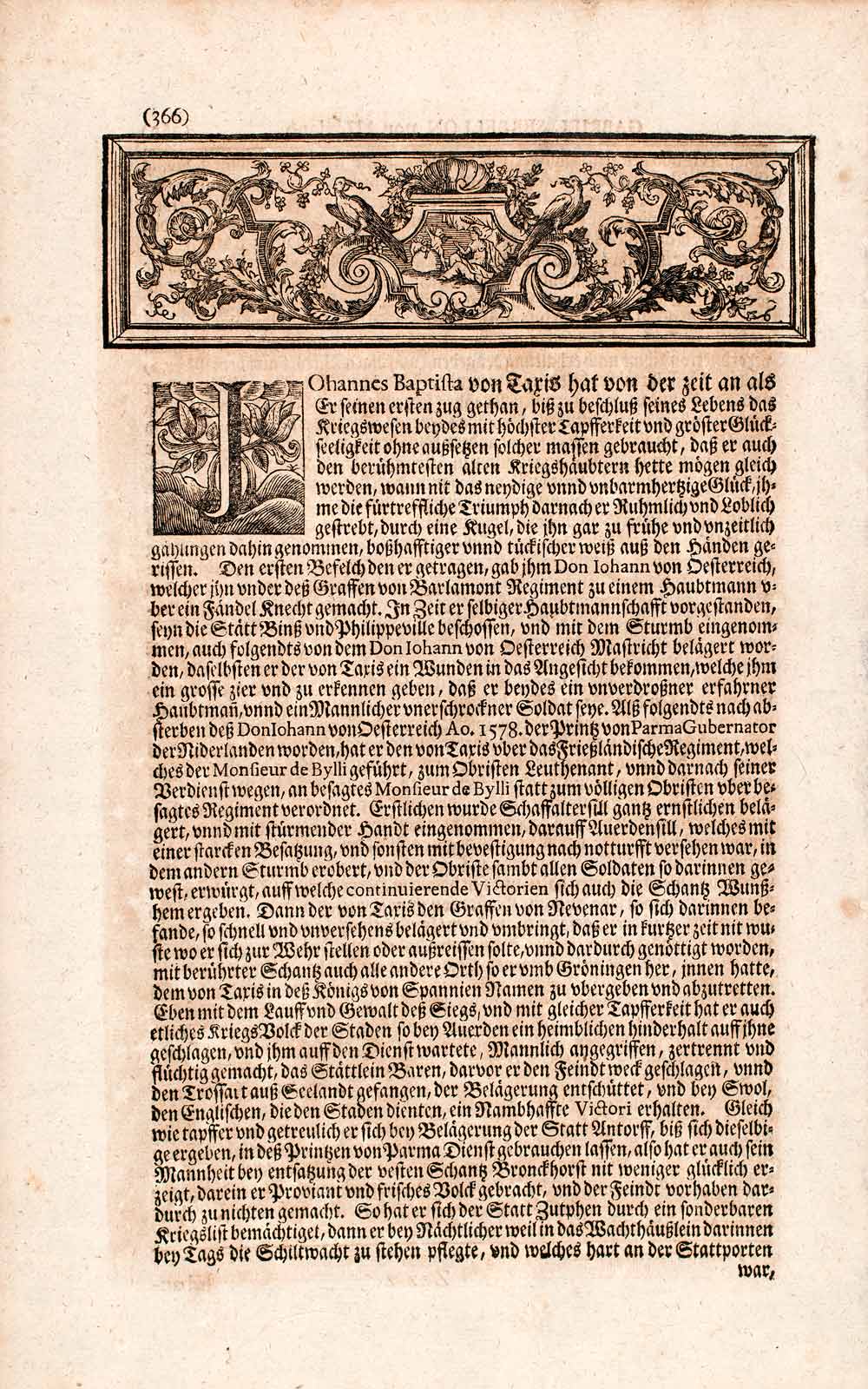 1721 Copper Engraving Portrait Johannes Baptista Taxis Thurn Baron Royal EUM3