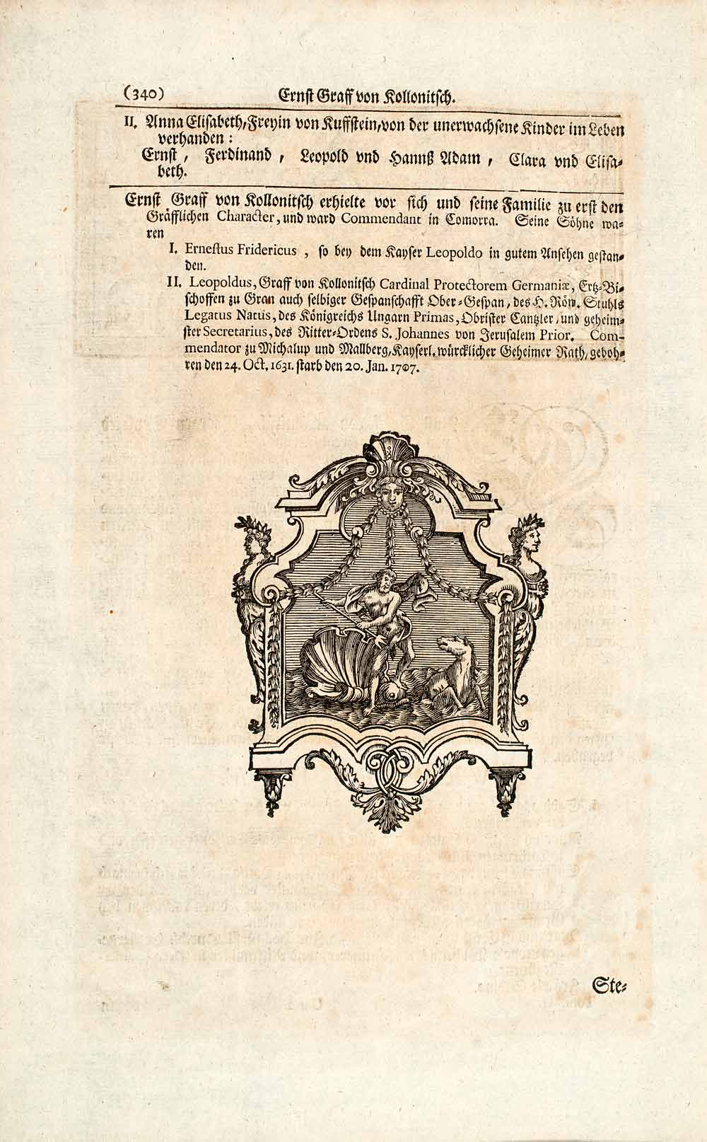 1722 Copper Engraving Portrait Ernst Graf Von Coloniths Kollonitsch EUM5