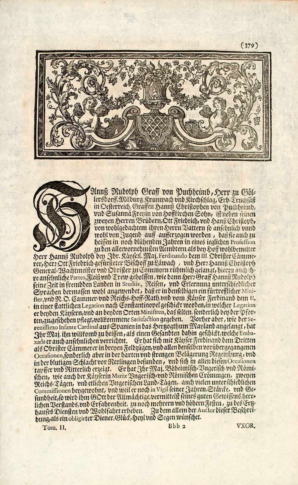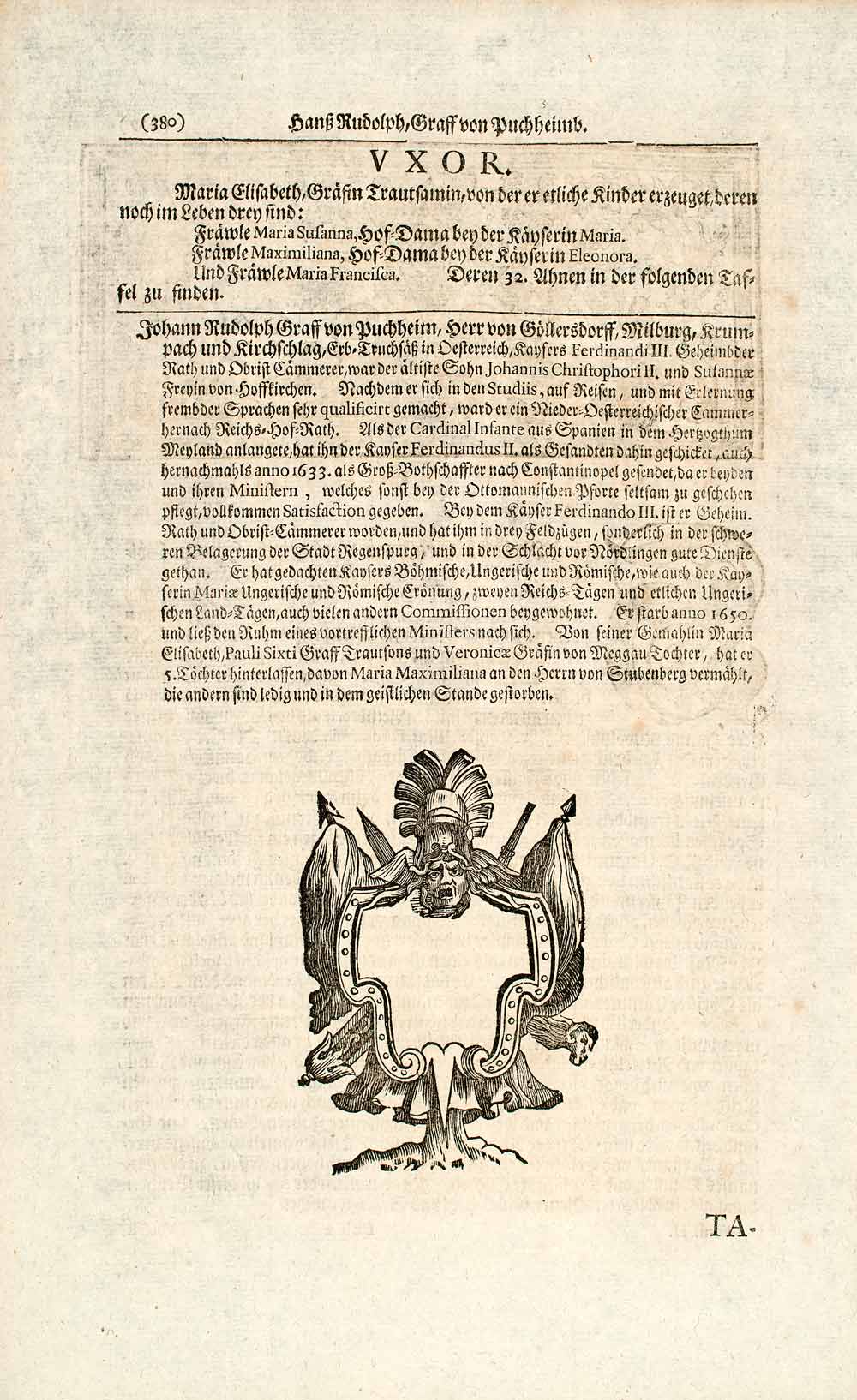 1722 Copper Engraving Portrait Hans Rudolph Graf Von Puchaimb Holy Roman EUM5