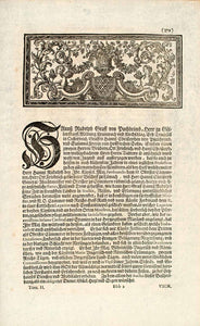 Period Paper is pleased to offer an extremely rare and impressive early eighteenth century collection of biographies and portrait engravings and etchings, produced in Leipzig, Germany in 1721 and 1722. Included are notable monarchs, rulers, religious figures, and members of notable Houses throughout Europe, including several genealogical charts of dynastic lines, spanning the sixteenth to early eighteenth centuries. The collection is comprised of exquisitely engraved and etched copper portrait plates framed by varying decorative motifs, all engraved by Johann Friedrich Rosbach. Many of the portraits include separate biographical pieces ranging in length from a single paragraph to several pages for more notable European monarchs and emperors. If present, the accompanying text is in German and is composed of beautiful woodcut text, with most pages containing elegantly etched drop cap initials, head-and tail-pieces and vignettes. The superb, folio-sized stock upon which the collection is engraved and etched employed the latest advances in eighteenth century paper making and highlights the era's predilection for strong, lightly sized paper with a fine structure and smooth surface. The paper's characteristics are thus similar to Japanese Gampi, and the result is well-preserved and crisp images that exceptionally capture Rosbach's fluid and sharp line work. This collection represents a unique opportunity to collect a valuable part of European history stunningly composed and illustrated.