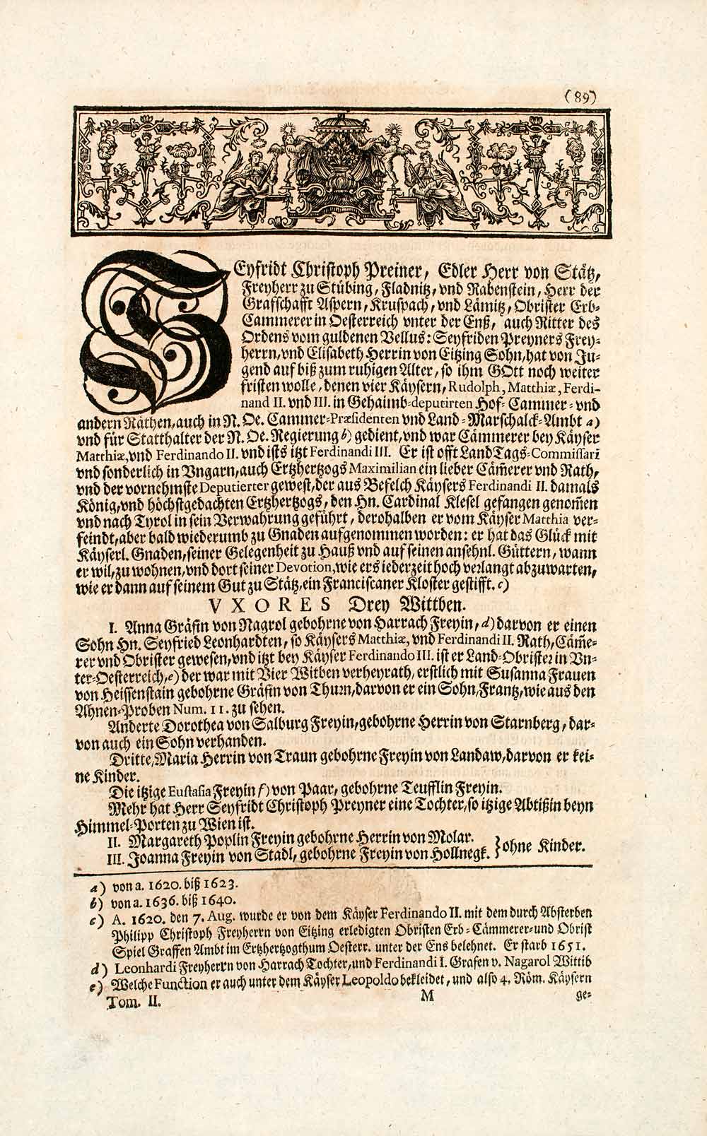 Period Paper is pleased to offer an extremely rare and impressive early eighteenth century collection of biographies and portrait engravings and etchings, produced in Leipzig, Germany in 1721 and 1722. Included are notable monarchs, rulers, religious figures, and members of notable Houses throughout Europe, including several genealogical charts of dynastic lines, spanning the sixteenth to early eighteenth centuries. The collection is comprised of exquisitely engraved and etched copper portrait plates framed by varying decorative motifs, all engraved by Johann Friedrich Rosbach. Many of the portraits include separate biographical pieces ranging in length from a single paragraph to several pages for more notable European monarchs and emperors. If present, the accompanying text is in German and is composed of beautiful woodcut text, with most pages containing elegantly etched drop cap initials, head-and tail-pieces and vignettes. The superb, folio-sized stock upon which the collection is engraved and etched employed the latest advances in eighteenth century paper making and highlights the era's predilection for strong, lightly sized paper with a fine structure and smooth surface. The paper's characteristics are thus similar to Japanese Gampi, and the result is well-preserved and crisp images that exceptionally capture Rosbach's fluid and sharp line work. This collection represents a unique opportunity to collect a valuable part of European history stunningly composed and illustrated.