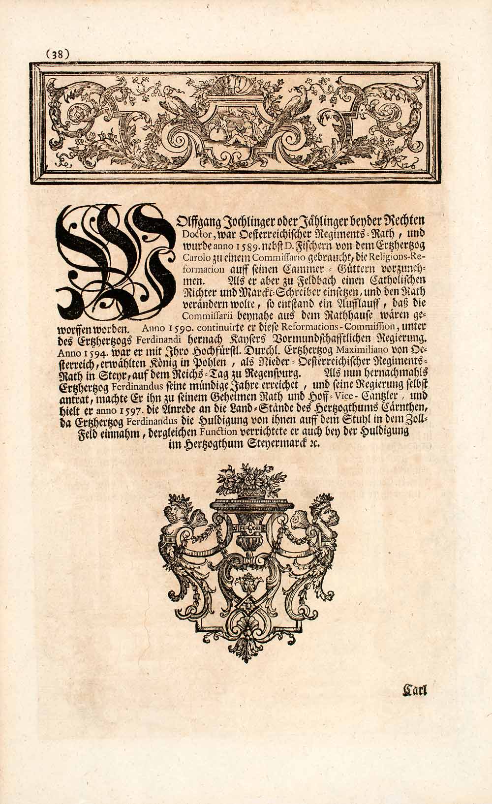1722 Copper Engraving Wolfgang Von Jochlingen European Aristocracy Portrait EUM4