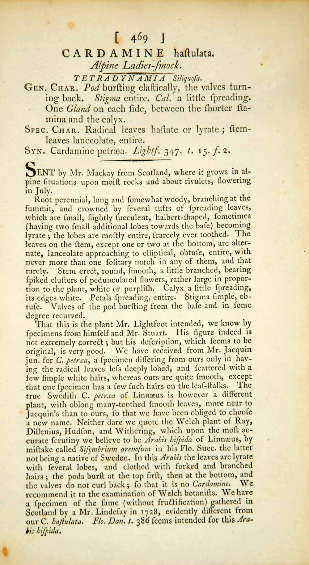 This is an original 1798 hand-tinted color copper engraving of the Cardamine resedifolia, commonly known as alpine ladies' smock, resedbläattrige, or migonette foam flower, that is native to Europe. A page of descriptive text accompanies this plate. Please see both images.