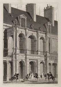 1831 Apartments Cour D'Honneur Fontainebleau Engraving - ORIGINAL PARIS2