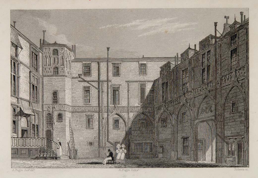 This is an original 1831 steel engraving of the H™tel de Preux (also known as the H™tel or Maison de la Couronne d'Or) in the Rue des Bourdonnais, Paris.