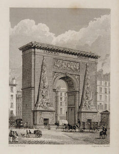 1831 Porte Saint-Denis Triumphal Arch Paris Engraving - ORIGINAL PARIS2