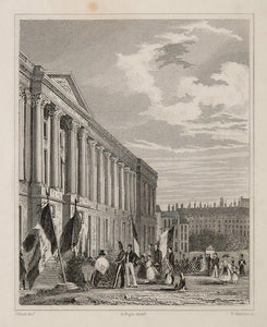 This is an original 1831 steel engraving of a view of the tomb to the memory of those who fell in the attack on the Louvre, July 1830 as part of the French Revolution of 1830, also known as the July Revolution.