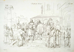 1834 Copper Engraving Costume Lombards Langobards Medieval Dress Nobles ILC2