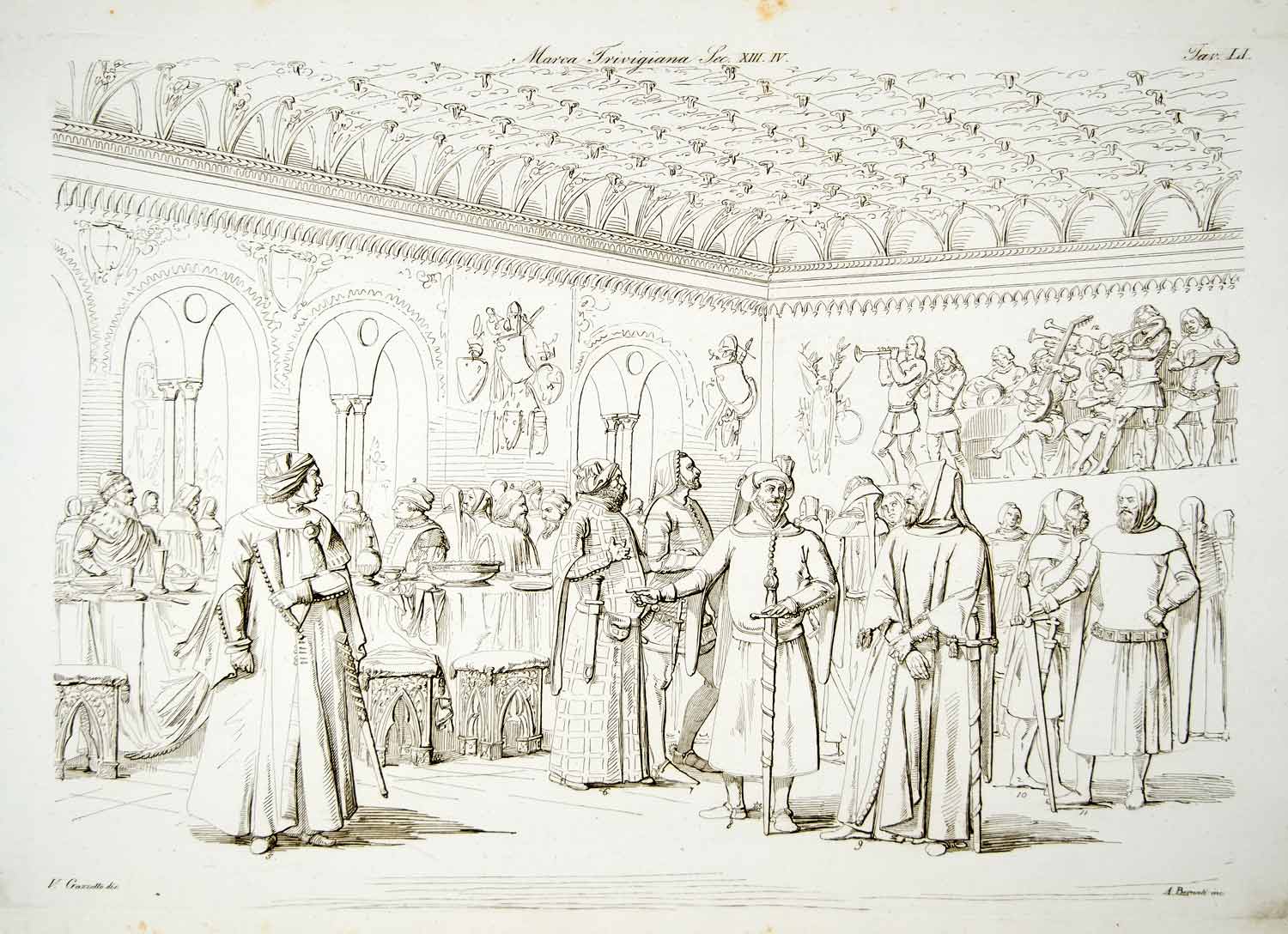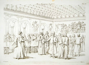 1834 Copper Engraving Scaliger Family Costume Medieval Hall Banquet Music ILC2