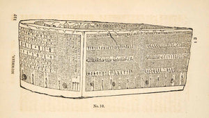 This is an original 1836 black and white in-text wood engraving of an Egyptian sarcophagus made of green breccia (granite) from the British Museum.