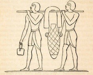 This is an original 1836 black and white in-text wood engraving of Egyptian waterbearers carrying the water jar and pail.