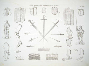1843 Copper Engraving Antonio Bernati Art Medieval Knight Armor Weaponry ILC3