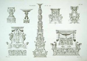 1843 Copper Engraving Antonio Bernati Art Riccio Candlestick Renaissance ILC3