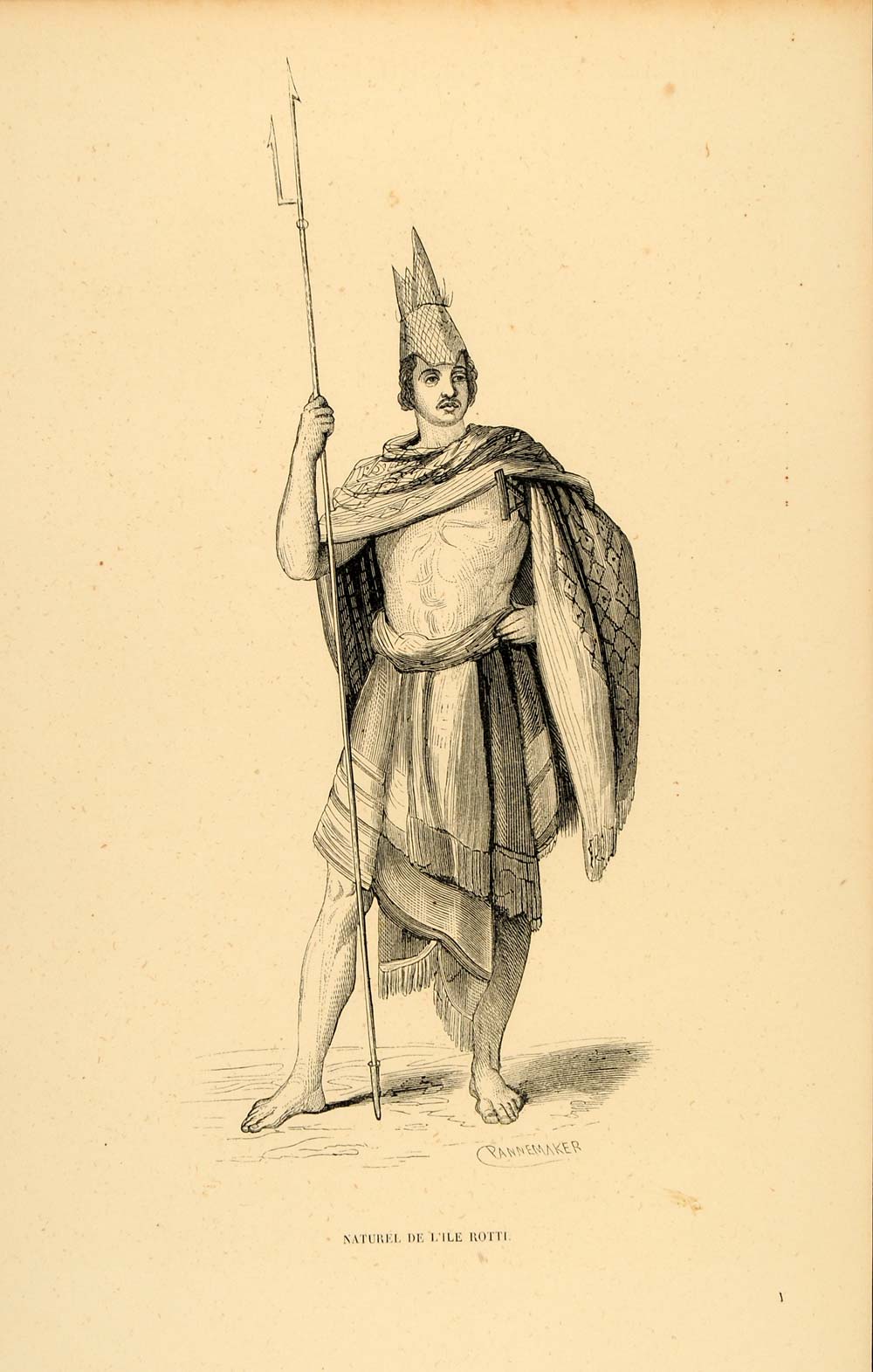 This is an original 1843 engraving of a man from Rotti, an island in the Malay Archipelago.