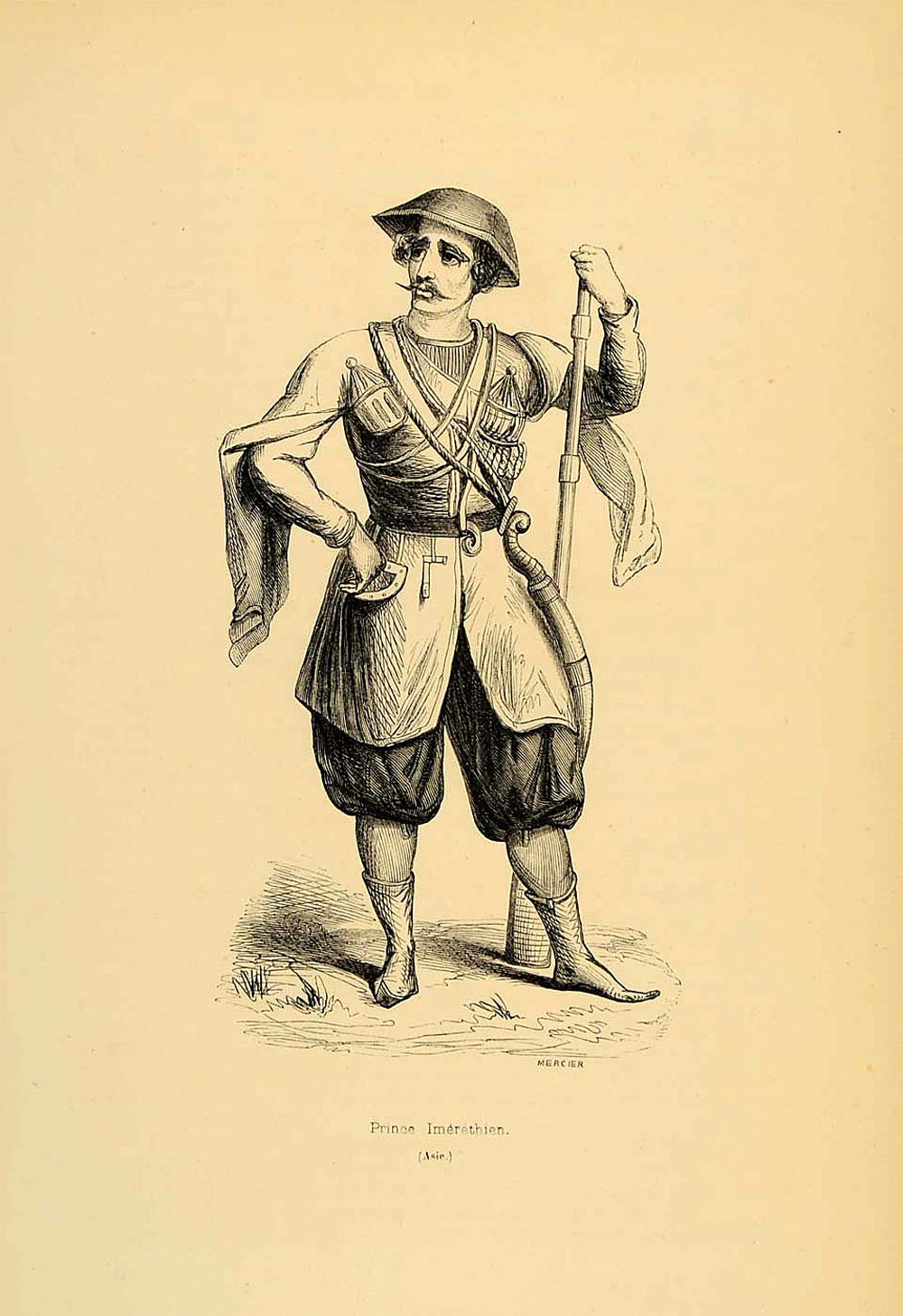 This is an original 1843 engraving of a Prince of Imereti which is a province in the western part of the Republic of Georgia.