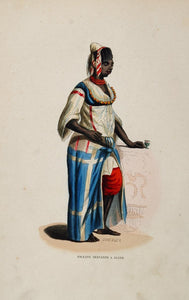 1843 Print Costume African Slave Servant Woman Algiers - ORIGINAL AFCOST