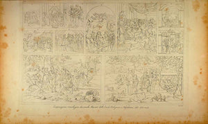 Period Paper is offering a rare and valuable collection of original copper engravings of Italian art and architecture from the 4th to the 16th century. This edition of the engravings collected and arranged by the French archaeologist and historian J. B. L. G. Seroux d'Agincourt (1730-1814), was published by Verlag von G. W. Mettenius in Frankfurt, Germany circa 1845. The captions are in Italian. The original copper plate imprint is visible on each engraving although this imprint does not show up well on the digital image. An end paper from this edition includes a stamp of the noted English architect --William White, 30A Wimpole St. W. with a date of April 15, 1864. Next to this stamp is the signature of F. Gilbert White and a date of June 11, 1860. These original engravings are exceptionally well preserved considering their age and are excellent items for framing. Any foxing appears darker on the digital image than it is on the actual item.