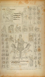1845 Engraving Medieval Latin Manuscript Horses King - ORIGINAL ARCH8