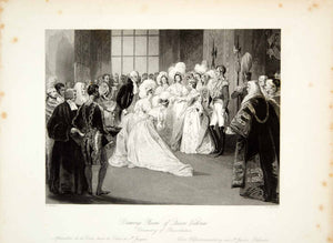 1845 Steel Engraving J Gilbert Queen Victoria Drawing Room St James Palace XGHD9