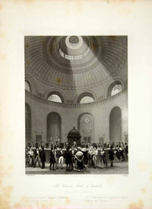 1845 Steel Engraving Thomas H Shepherd Rotunda Bank England London XGHD9