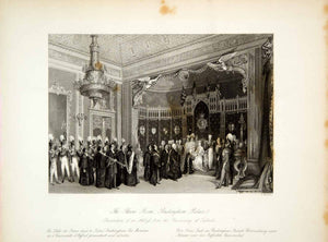 1845 Steel Engraving Thomas H Shepherd Throne Room Buckingham Palace XGHD9