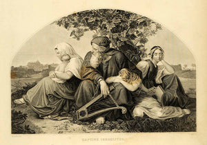 1849 Copper Engraving Babylonian Exile Captive Israelites Family Lyre XHA2