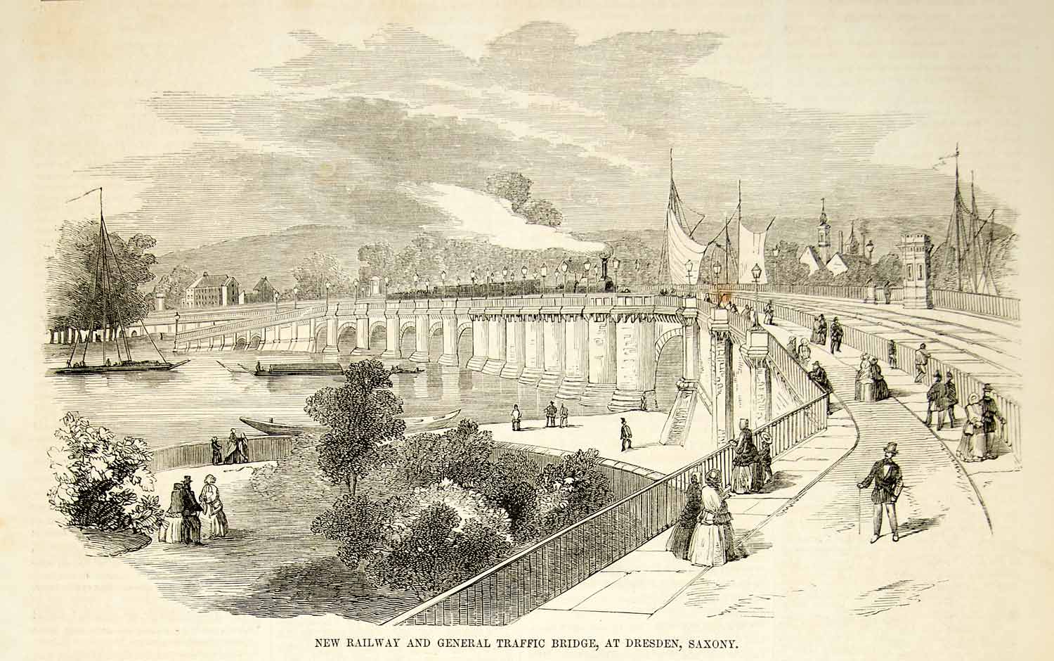 "New Railway and General Traffic Bridge, at Dresden, Saxony"