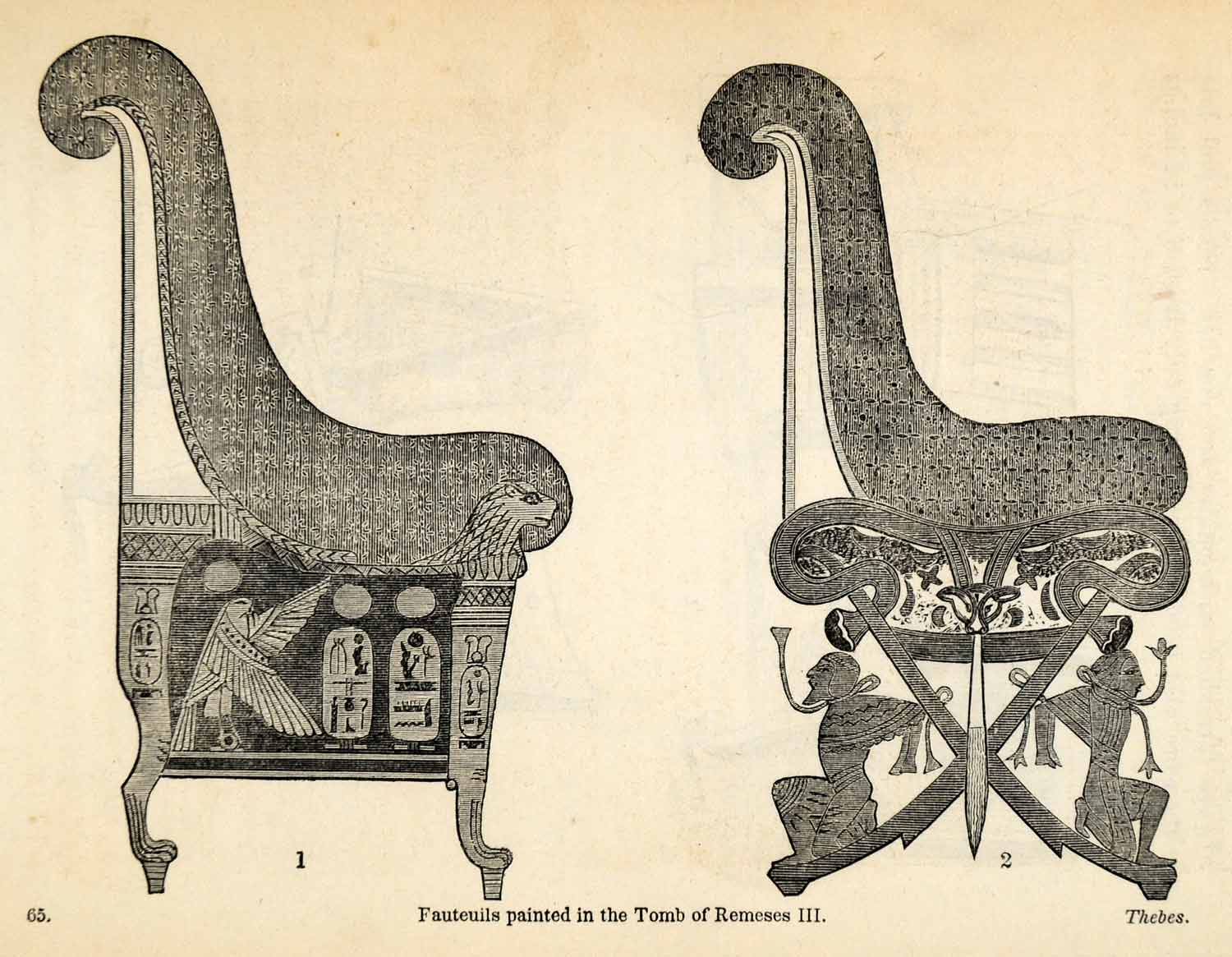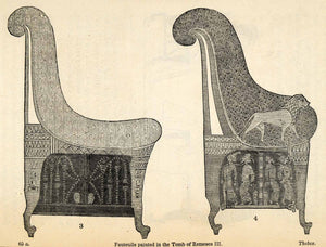Keywords specific to this image: Archaeological, Ancient Furniture, Ancient Cultures, Ancient Civilizations, Hieroglyphics, Open Arm Chairs, Decorative